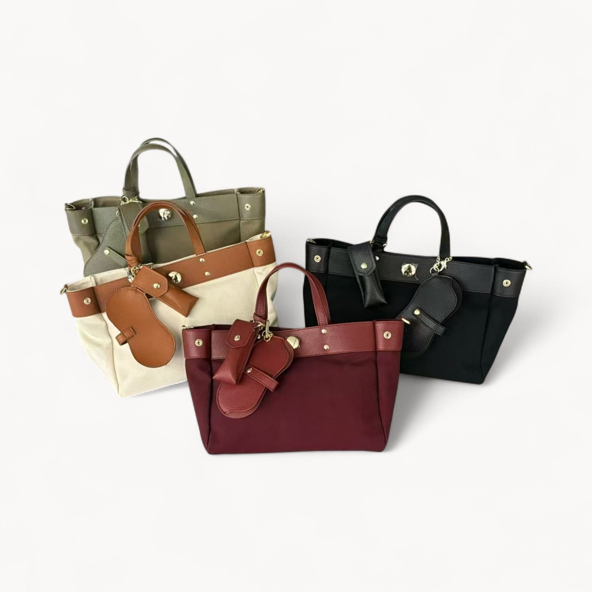 This canvas tote bag with cowhide trim combines style and practicality for your daily needs. Crafted from soft, genuine first-layer cowhide and durable nylon lining, it offers a sophisticated yet comfortable feel. Available in wine red, beige and brown, army green, and black, its horizontal square design (33x25x16 cm or 27x12x20 cm) includes an outer sandwich pocket and an internal phone compartment, ensuring you stay organized wherever you go. Elevate your everyday look with this versatile and elegant tote.