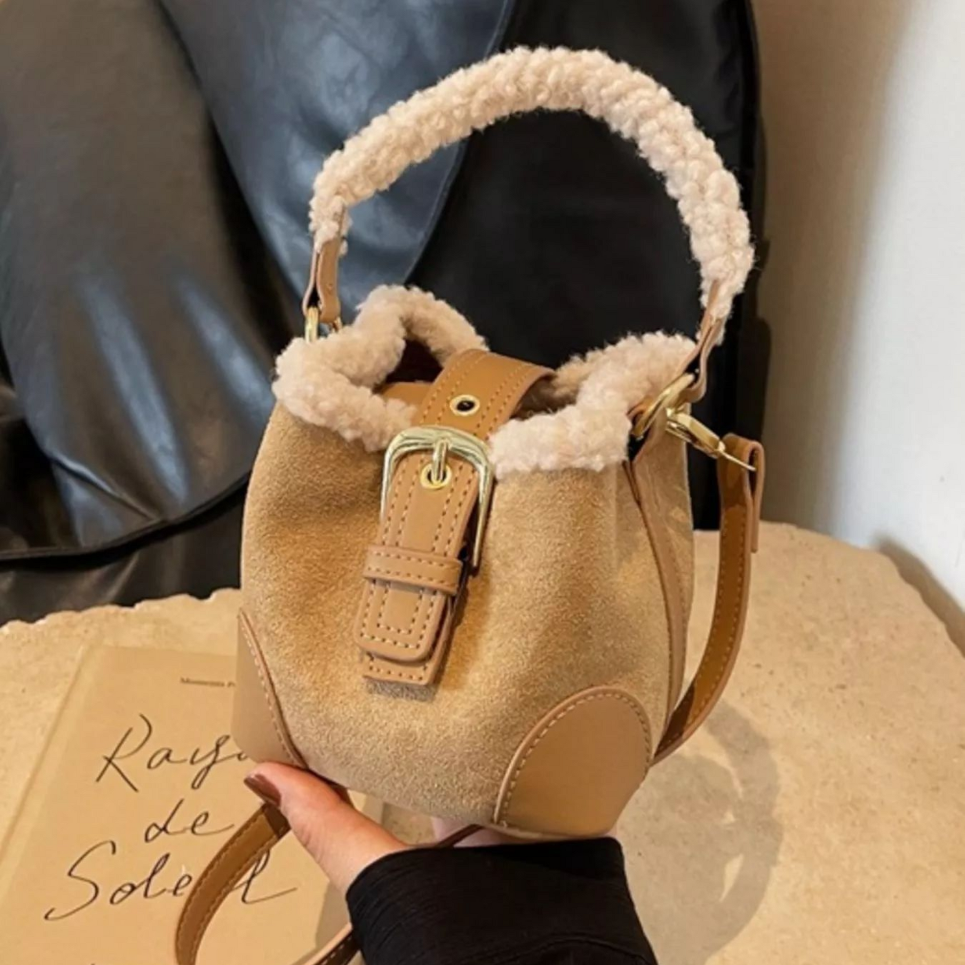 The Cozy Sherpa Mini Bucket Bag is the perfect cold-weather accessory — soft, stylish, and effortlessly cute. Designed with plush sherpa trim, faux suede texture, and chic gold-tone buckle details, this mini bag brings warmth and charm to any winter outfit.