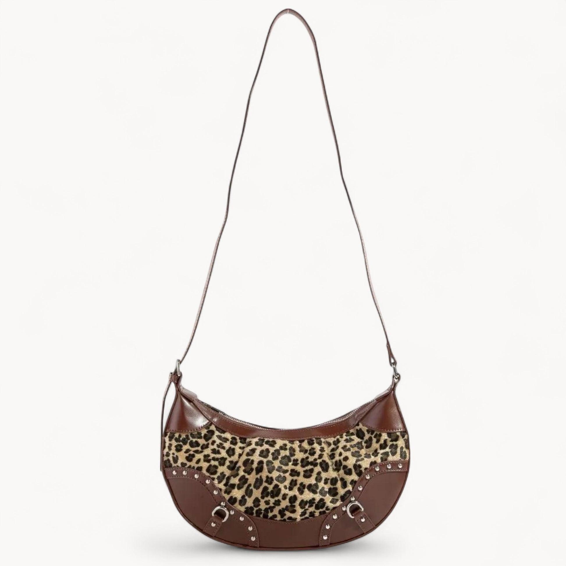 Introducing the Leopard Print Half Moon Shoulder Bag, a trendy and stylish accessory that adds a touch of wild flair to your outfit. This eye-catching bag features a bold leopard print design that is sure to make a statement. The half-moon shape adds a unique and modern touch to the bag's silhouette. With a shoulder strap for easy carrying, this bag combines fashion and functionality effortlessly. Elevate your look with this chic and on-trend shoulder bag that exudes personality and style.