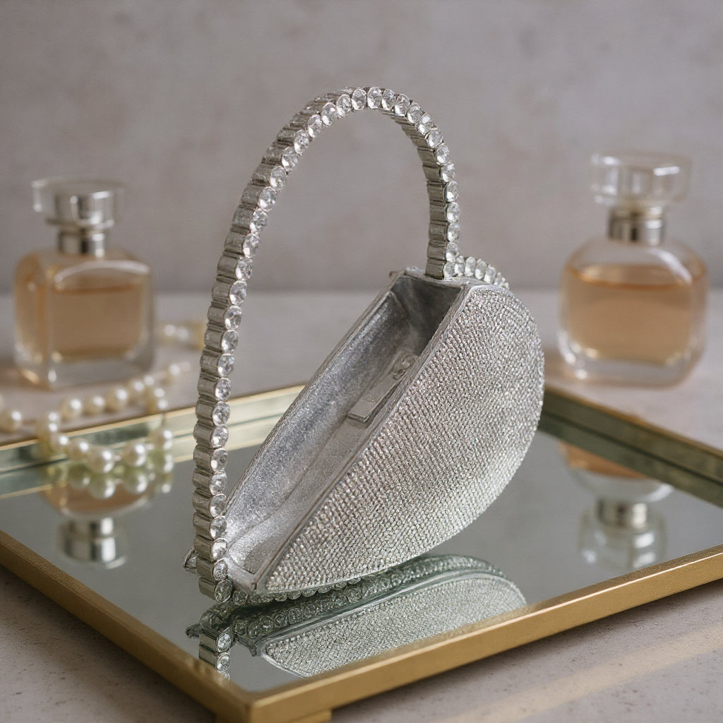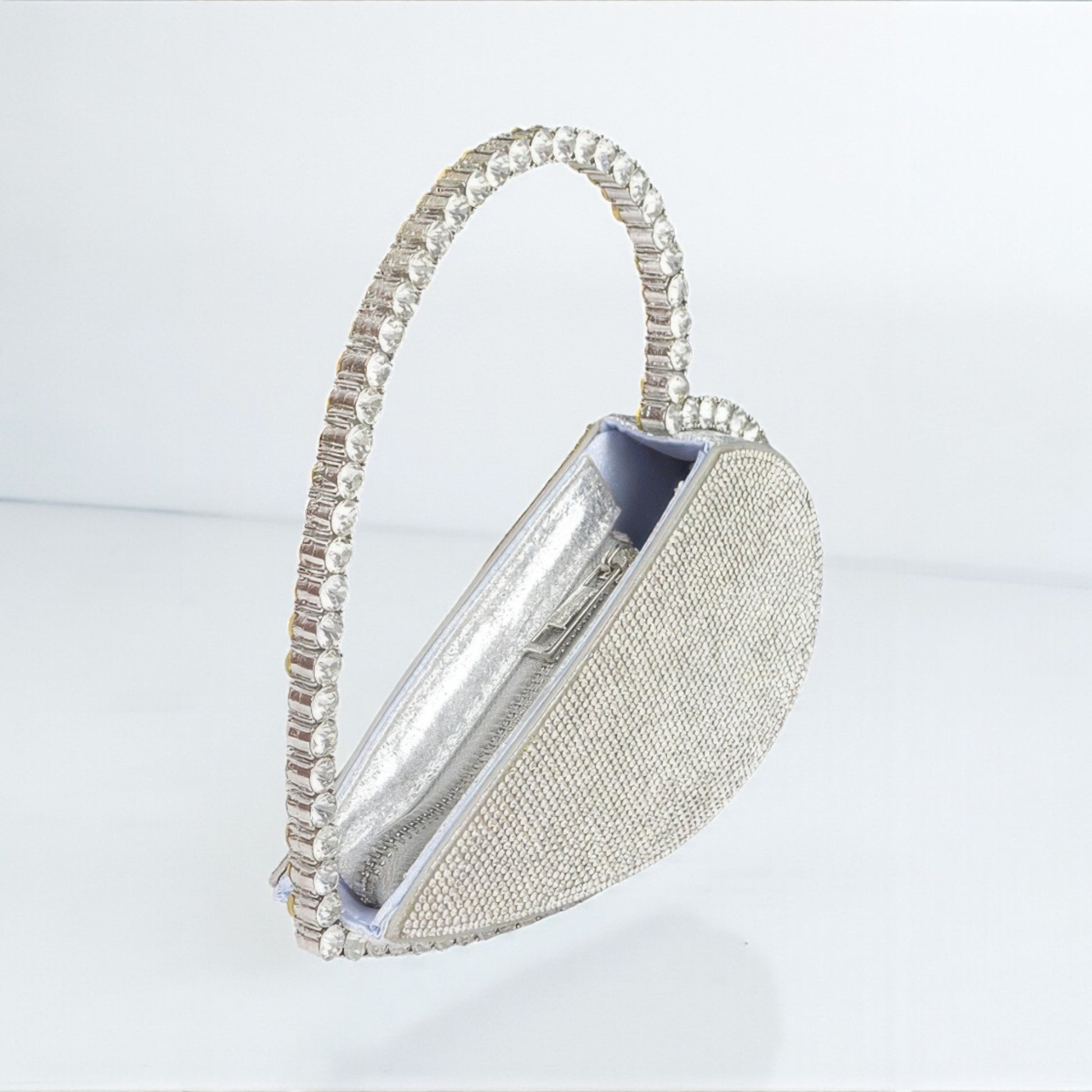 Turn heads with the dazzling Heart Shape Rhinestone Bag. This elegant piece features a radiant rhinestone-encrusted exterior shaped in a romantic heart silhouette. Both playful and polished, it adds a pop of sparkle to any outfit. Designed for evening wear or glamorous occasions, this clutch brings charm and luxury to your accessory lineup.
