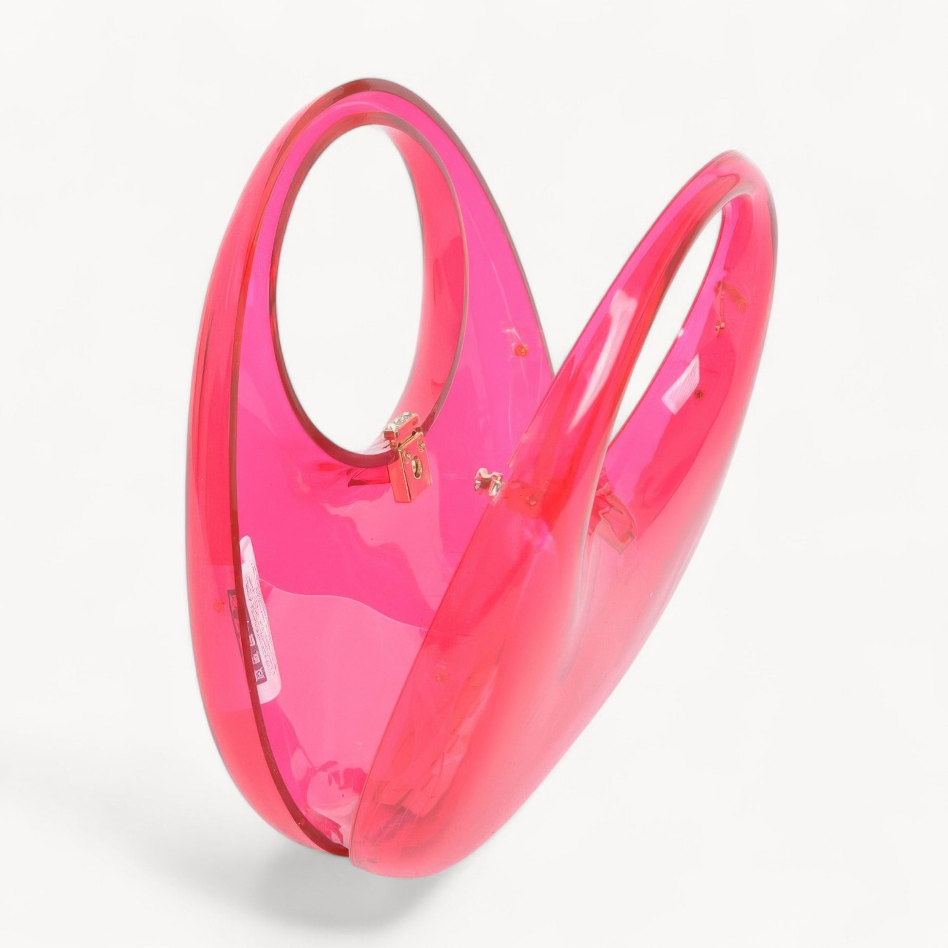 Step into the spotlight with The Aurora Clutch, a radiant statement piece where bold color meets sculptural design. Crafted from high-quality acrylic with a sleek, glossy finish, this clutch is made to stand out. Its luminous transparency and smooth curves capture light beautifully, while the gold-tone chain adds a touch of sophistication.