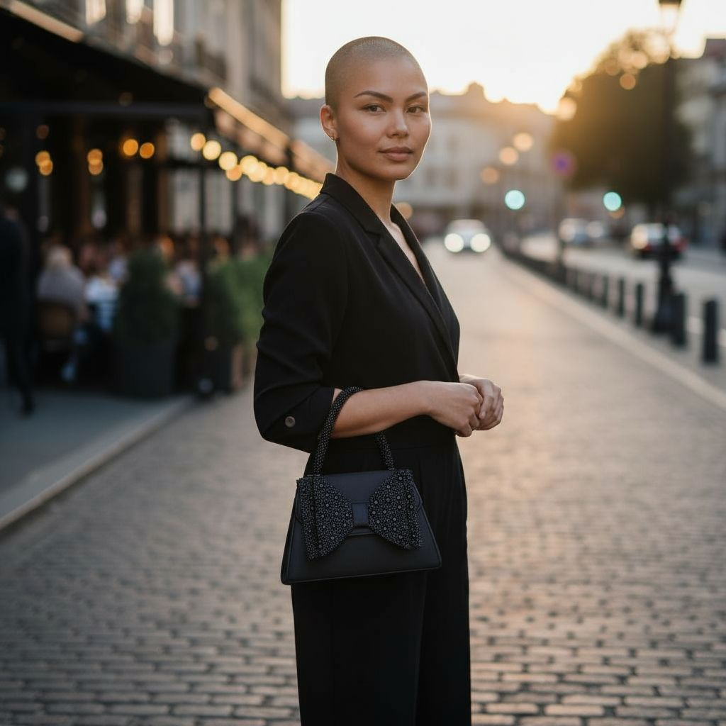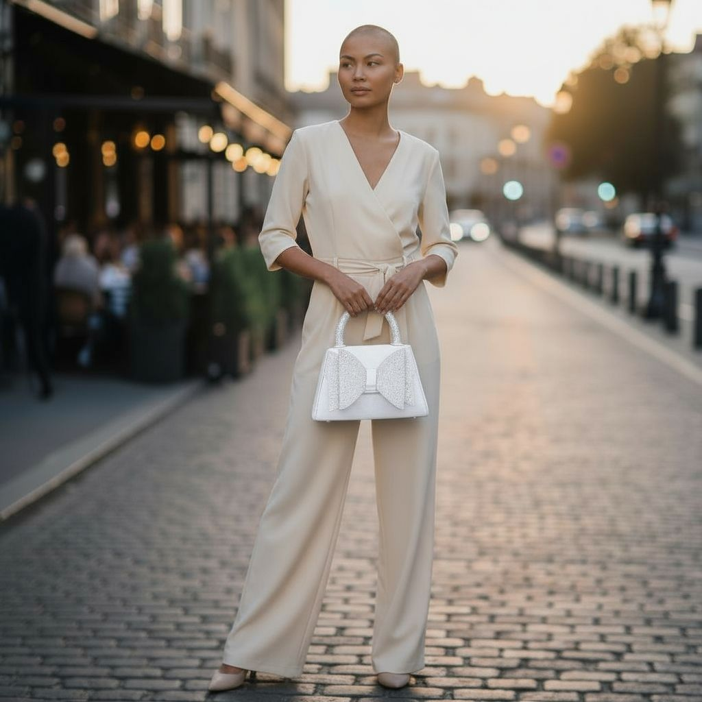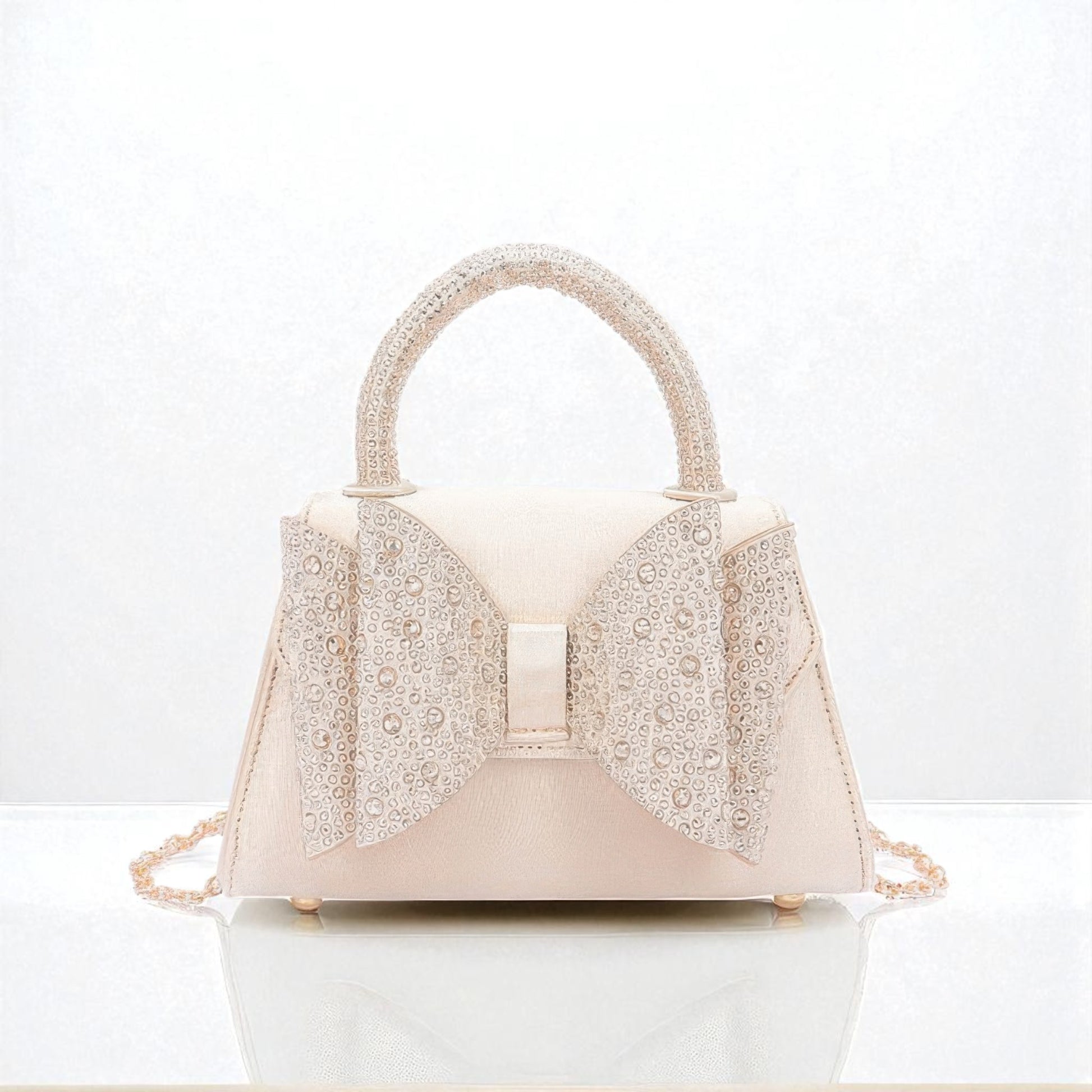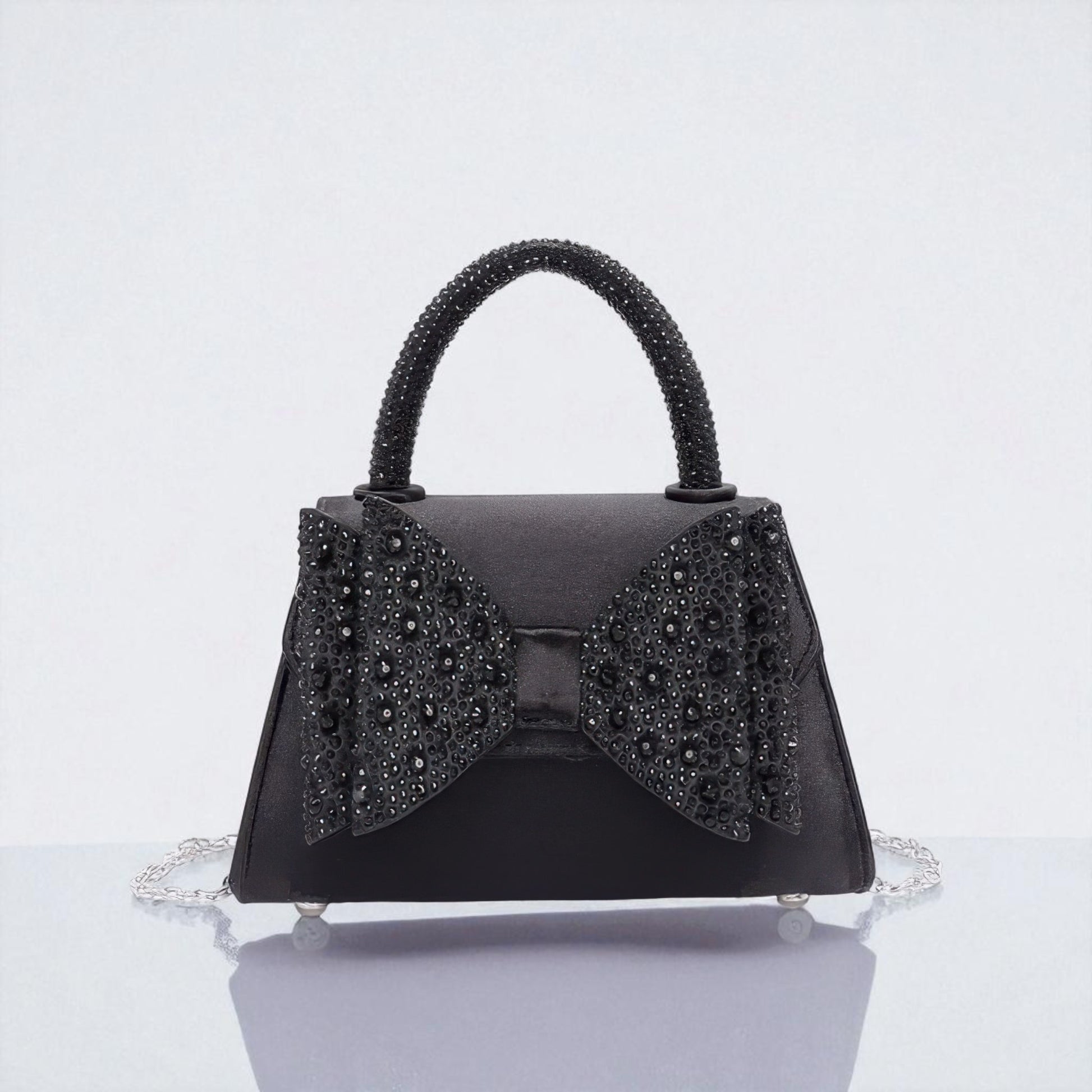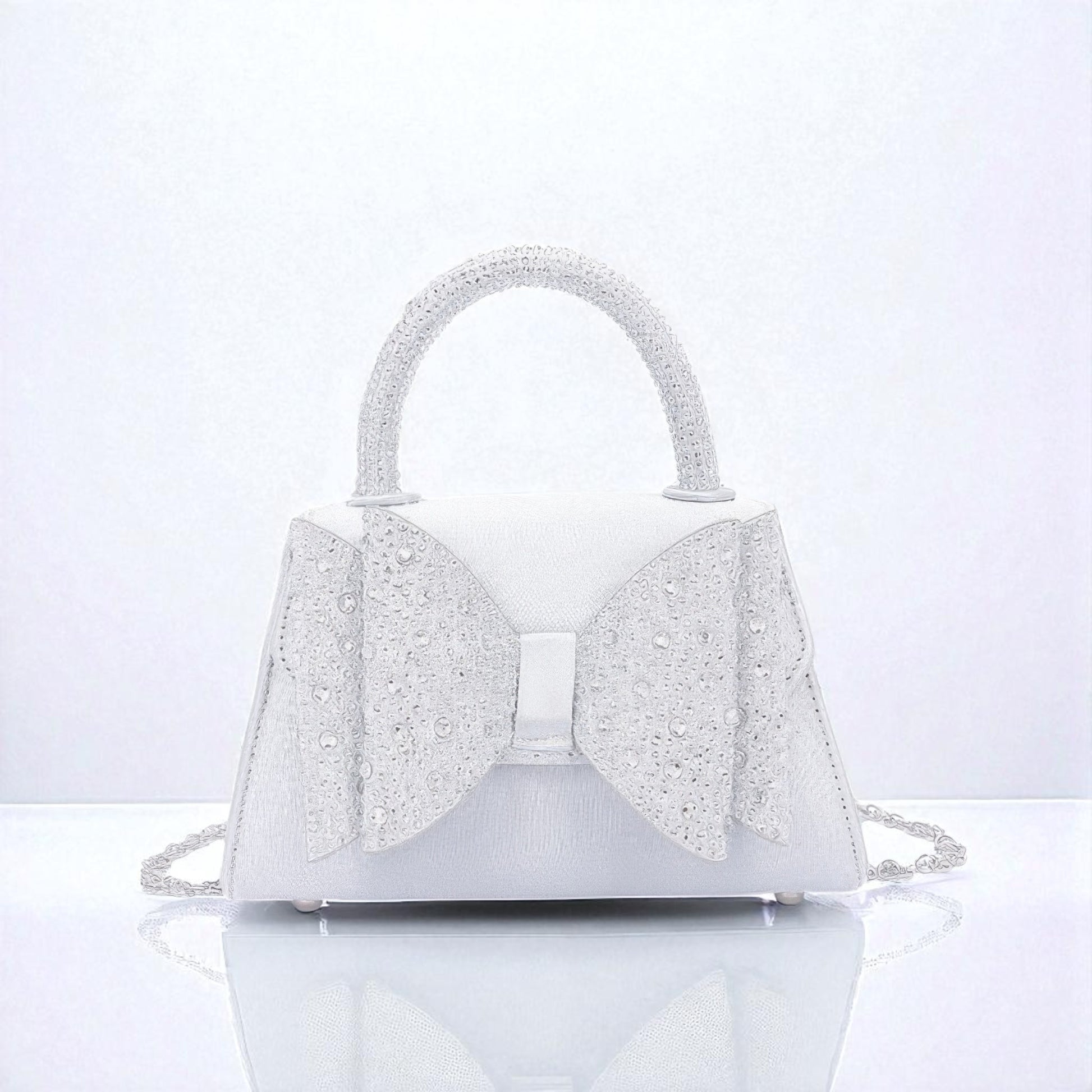 Turn heads with the Rhinestone Ribbon Top Handle Satin Flap Bag—a refined statement piece with an unmistakably feminine edge. Featuring a lustrous satin flap and a dazzling rhinestone bow detail, this structured top-handle bag adds instant glamour to any ensemble. Its compact silhouette offers elegance without compromising on impact. Perfect for evening events, weddings, or upscale outings, it’s the ultimate accessory for a polished finish.