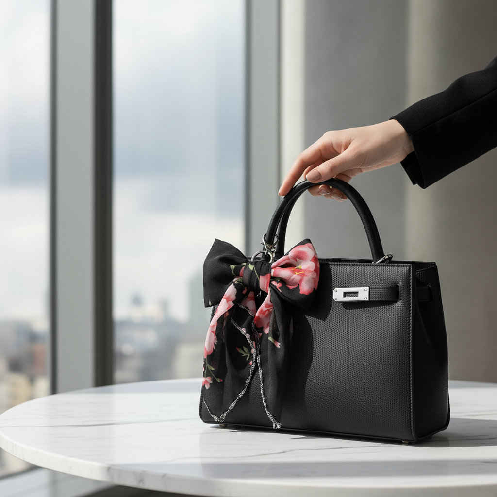 Versatile styling: bag charm, necktie, or headscarf