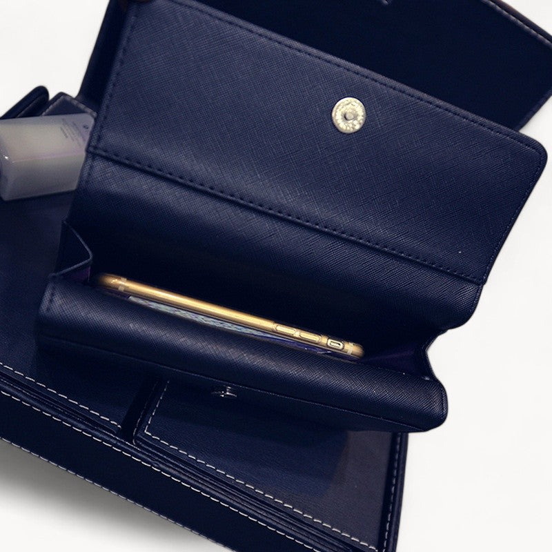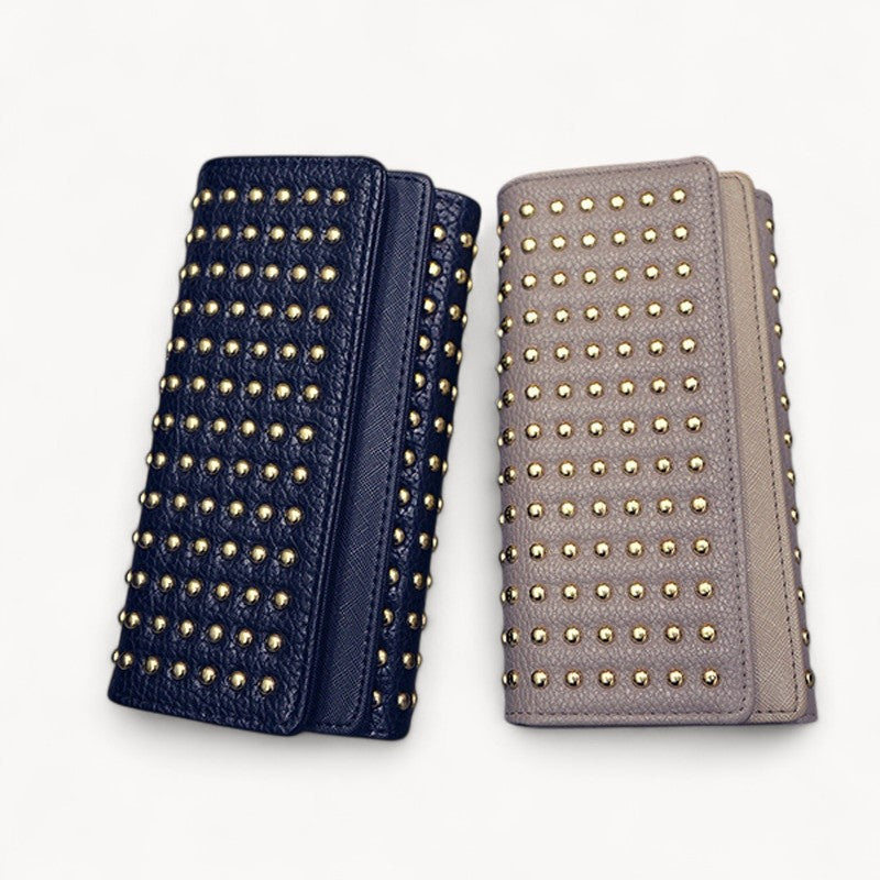 Push the boundaries of everyday style with this daring women's long tri-fold wallet, featuring a sleek solid color design that demands attention. Crafted from premium PU leather infused with antibacterial properties, it combines bold durability with edgy rivet accents that elevate your look. The robust polyester lining ensures lasting strength, while the large capacity lets you organize your essentials without compromise. Available in striking black and sophisticated gray, this wallet is more than just an accessory—it's a statement of fearless urban simplicity and functional elegance rolled into one powerful package.
